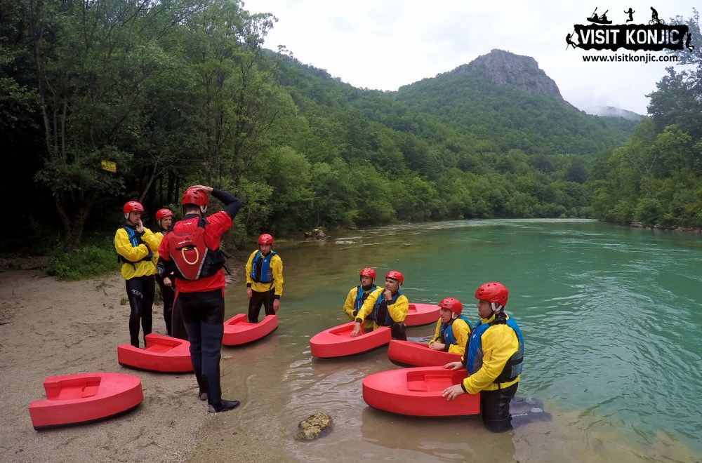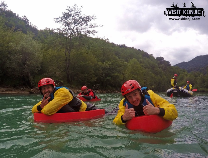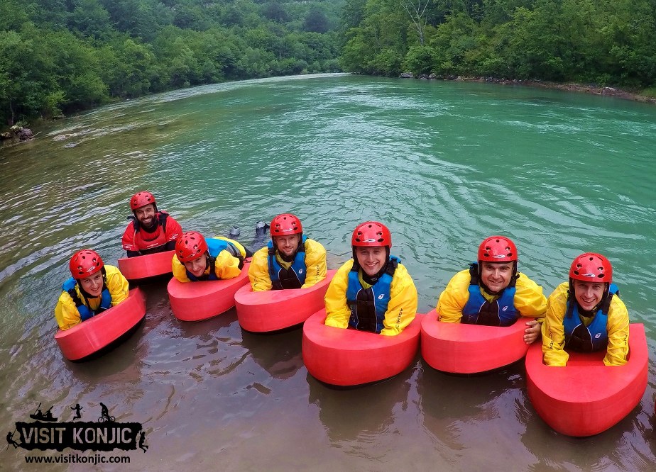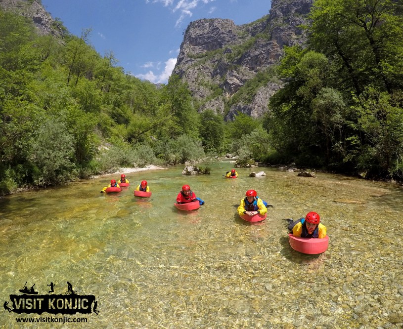 Mini hydrospeed tour on the Neretva river can start from 9 a.m. to 4 p.m. every day. This tour is about 2 hours long. You need to make a reservation at least one day before, or on your arrival day if we have availabilites. Meeting point is Visit Konjic tourist info center in Konjic.